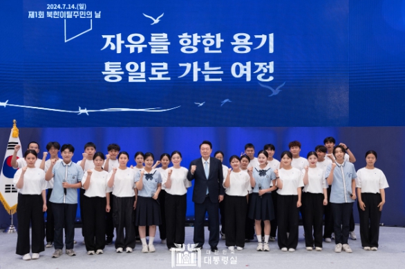 [뉴스서치] 윤석열 대통령은 오늘(7. 14, 일) 오전 청와대 영빈관에서 개최된 ‘제1회 북한이탈주민의 날 기념식’에 참석했다. ‘북한이탈주민의 날’은 대통령이 지난 1월 16일 국무회의에서 북한이탈주민을 따뜻하게 포용하고 성공적인 정착을 격려하기 위해 제정을 약속한 것으로, 북한이탈주민의 날 기념식을 개최한 것은 역대 정부 중 이번이 처음이다.