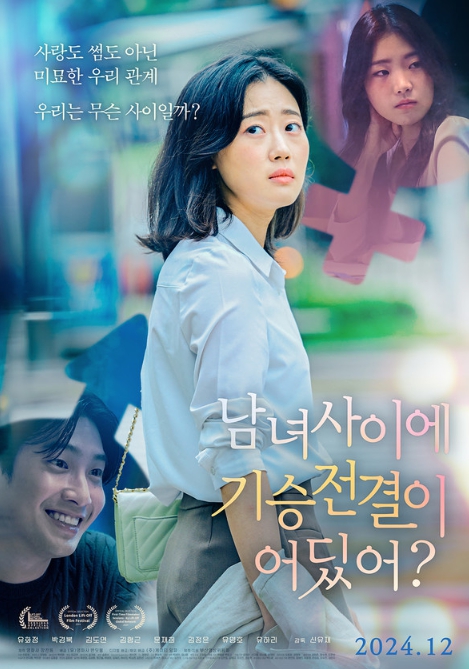[뉴스서치] 사랑도 썸도 아닌 미묘한 남녀 관계의 리얼한 연애담을 그린 '남녀 사이에 기승전결이 어딨어?'가 12월 26일 개봉을 확정하고 메인 포스터를 공개했다.[감독: 신유재ㅣ출연: 유화정, 박경복, 김도연, 김형근, 문재희, 김정은, 유영호, 유하리 ㅣ제작: 영화사 장전동ㅣ배급: 유한회사 영화사 반딧불 ㅣ제작 지원 부산영상위원회]
