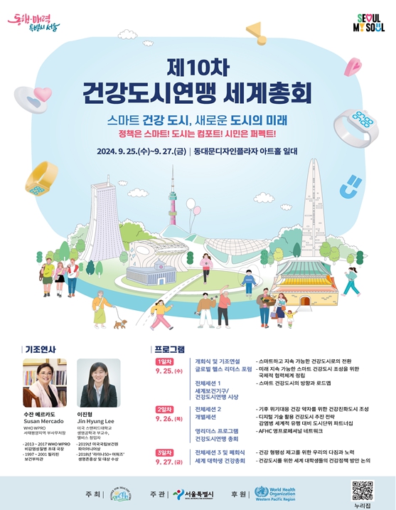 서울시는 9월 25일부터 27일까지 사흘간 동대문디자인플라자에서 '제10차 건강도시연맹 세계총회'를 개최한다고 밝혔다. 올해 총회는 세계보건기구(WHO) 서태평양 건강도시연맹(The Alliance For Healthy Cities·AFHC) 창립 20주년을 기념한 행사로 2018년 말레이시아에서 진행된 제8차 총회 이후 6년 만에 열리는 대규모 대면 회의다.