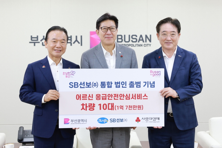 [뉴스서치] 부산시는 에스비(SB)선보(주), 부산사회복지공동모금회와 함께 오늘(12일) 오후 2시 30분 시청 의전실에서 '에스비(SB)선보(주) 응급안전안심서비스 차량 지원 기부금 전달식'을 개최한다고 밝혔다.