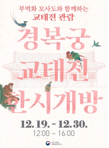국가유산청은 이번 모사도 한시 공개를 위해 평소에는 내부 공개가 되지 않는 교태전의 대청을 12월 19일부터 30일까지 총 11일간만 한시 개방하며, 개방 기간 중에는 경복궁 휴궁일(12.24.)을 제외한 매일 오후 12시부터 오후 4시까지 누구나 별도의 사전 신청 없이도 교태전 대청에 올라 부벽화를 관람할 수 있다.
