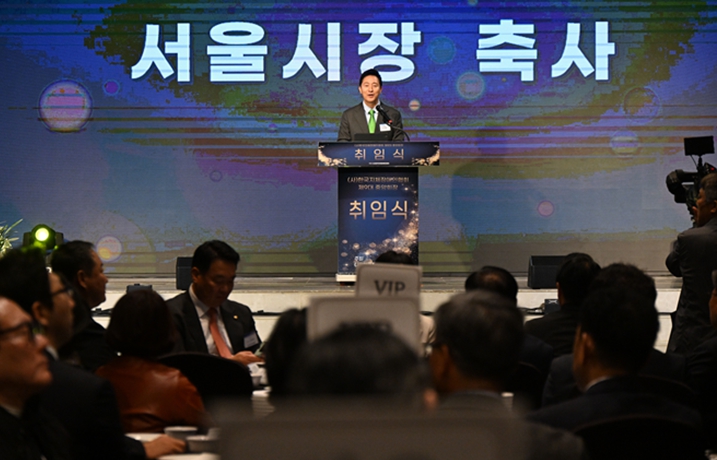▲ 오세훈 시장이 23일 오전 종로구 HW컨벤션에서 열린 「제9대 한국지체장애인협회장 취임식」 에서 축사를 하고 있다. |