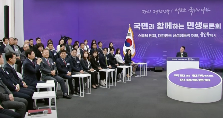 ▲ 25일 용인특례시청에서 개최된 국민과 함께하는 민생토론회에서 이상일 용인특례시장이 발언하고 있다.(사진-KTV 갈무리) |