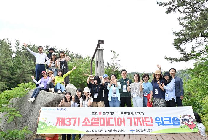 [뉴스서치] 울산 중구가 6월 4일 오전 11시 입화산 자연휴양림에서 ‘제3기 울산 중구 소셜미디어 기자단 역량 강화 공동연수(워크숍)’를 진행했다.