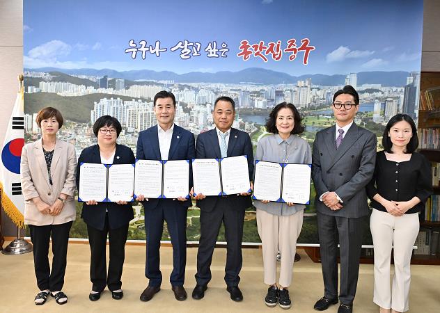 이날 협약식에는 김영길 중구청장과 김채규 사회복지법인 물푸레복지재단 대표이사, 홍관표 중구종합사회복지관장, 변해선 다함께돌봄센터장 등이 참석했다.