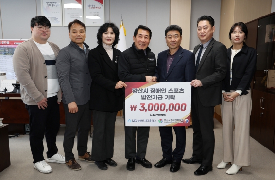 [뉴스서치] 양산시는 20일 남양산새마을금고가 양산시장애인체육회에 발전기금 300만원을 기탁했다고 밝혔다.