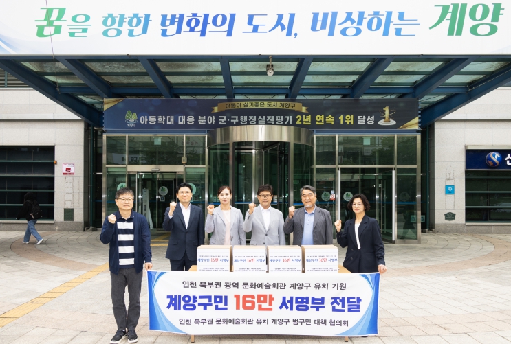 계양구 예술인연합회를 비롯한 사회단체들을 중심으로 구성된 ‘인천북부권 문화예술회관 유치 계양구 범구민 대책협의회’는 거리 서명운동과 전자서명, 계양구의 각 시설을 통해 서명운동 참여를 독려하는 등 노력을 기울인 결과 계양구 전체 인구의 60%가 넘는 159,481명의 구민이 서명에 동참하는 결실을 거뒀다.