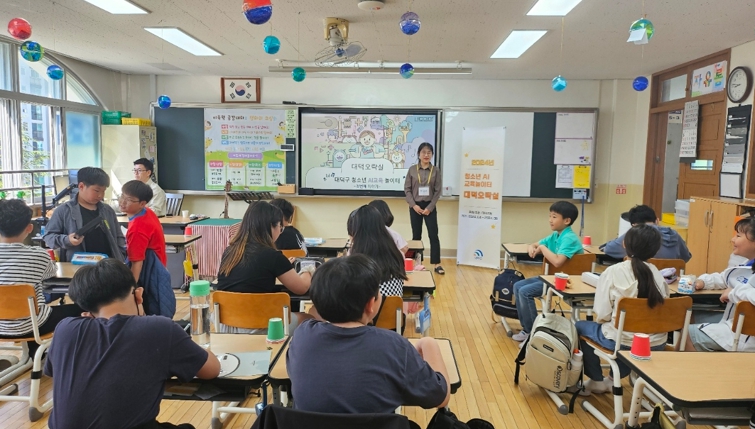 ▲ 대전 대덕구(구청장 최충규)가 진행한 청소년 AI(인공지능) 교육 놀이터 ‘대덕 오락실’ 교육 모습 |