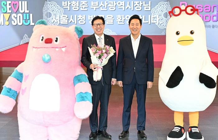 오 시장은 앞서 지난달 23일 부산을 방문해 도시디자인, 관광활성화, 스타트업 육성, 정원문화 확산 등 다양한 분야에 대한 우호교류강화를 위한 업무협약 체결하고 민선 8기 서울시정 철학인 ‘동행·매력특별시 서울’을 주제로 부산시청 공무원을 대상으로 특강을 펼쳤다.
