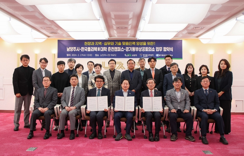 [뉴스서치] 남양주시는 27일 시청 여유당에서 한국폴리텍Ⅲ대학 춘천캠퍼스(학장 이덕수) 및 경기동부상공회의소(회장 문한경)와 함께 현장 실무중심의 지역 맞춤 인력 양성을 위해 업무협약을 체결했다고 밝혔다.