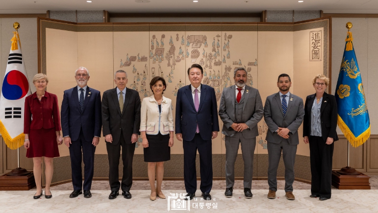 대통령은 美 의회에서 한국을 가장 사랑하는 의원들 모임인 코리아스터디그룹 대표단의 방한을 환영한다며 코리아스터디그룹이 한미동맹의 든든한 후원자로서 그동안 美 의회 내에서 한미동맹의 지지 기반을 확대하고 양국 관계의 발전을 도모하는 데 많은 노력을 기울여 온 것을 평가했다.
