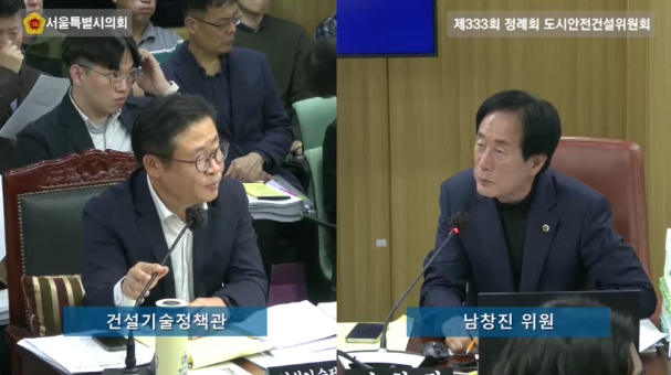 [뉴스서치] 서울특별시의회 도시안전건설위원회에서 의정 활동 중인 남창진 의원(국민의힘, 송파2)은 12일 소관기관인 서울시 도시기반시설본부 시설국과 건설기술정책관 2025년 행정사무감사에서 탄천변 동측도로 구조개선 현장의 우회도로의 안전관리와 교통처리 등을 주문했다.