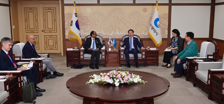 [뉴스서치] 유정복 인천광역시장은 8월 22일 시청 접견실에서 지난 3월 유엔 재난위험경감사무국(UNDRR) 대표로 임명된 카말 키쇼어(Mr. Kamal Kishore)를 만나 유엔 재난위험경감사무국(UNDRR)과 인천시의 상호 협력․발전 방안에 대해 논의했다.