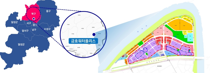 금호워터폴리스는 서남부권에 치우친 제조산업단지와 동부권의 디지털 집적단지를 연결하는 중간 거점으로, 지역의 ‘제조-디지털 벨트’ 완성을 위해 반드시 필요한 도심권 핵심거점이다. 주요 투자 기업은 협동로봇 부품분야에 신규 진출하는 ㈜동보와 삼성SDI 이차전지 협력사로 선정된 SJ이노테크로, 2천293억 원을 투자할 계획이다.