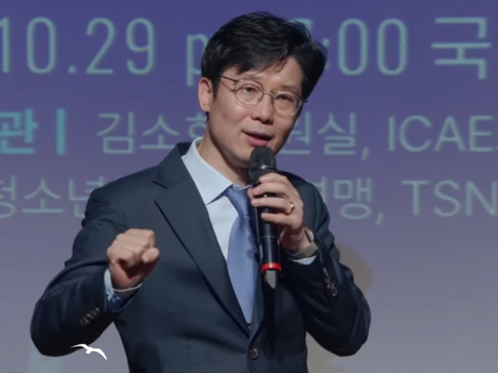 | ▲ 주광 김용두(SNS기자연합회 회장) ICAE 국제컨퍼런스에서 강연하는 모습 / SNSJTV 제공 |