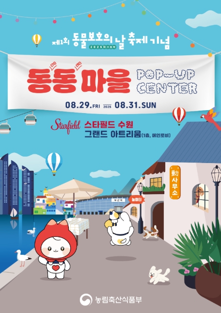 [뉴스서치] 농림축산식품부는 유실·유기동물의 입양 활성화를 위해 지자체 동물보호센터의 입양 대상 동물을 소개하는 팝업 행사를 8월 29일부터 8월 31일까지 개최한다.