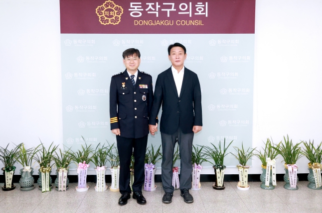 [뉴스서치] 동작구의회 정재천 의장은 5일 구의회 의장실에서 정석화 신임 동작경찰서장과 함께 지역 현안과 치안 강화를 위한 다양한 의견을 나누며 구민의 안전과 행복을 위해 함께 노력할 것을 약속했다.