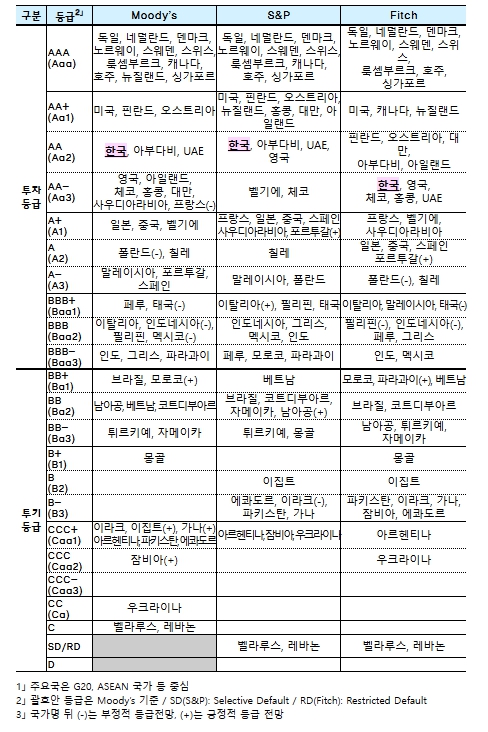 | ▲ 주요국 국가신용등급 비교 ('26.4월) |