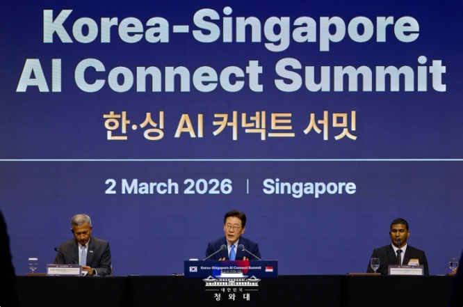 [뉴스서치] 싱가포르를 국빈 방문한 이재명 대통령은 2일(현지시간) 오후 '한·싱 AI 커넥트 서밋'에 참석해 "대한민국과 싱가포르의 동반성장으로 AI 산업의 흐름을 선도하는 'AI 대항해 시대'를 열어갈 것"이라고 밝혔다.