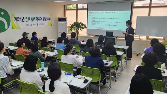 의료서비스 전문가의 강의로 진행되는 이번 교육은 병원동행 서비스의 개념, 주요 노인성 질환 이해와 돌봄, 안전관리, 병원 행정 처리절차, 사회복지서비스 등의 과정으로 진행된다. 아울러, 교육수료자를 대상으로 별도 시험을 통해 병원동행매니저 자격증이 발급된다.