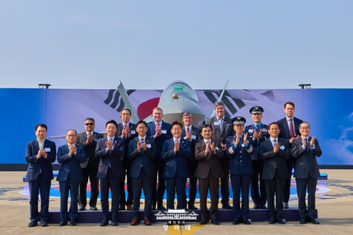 그러면서 "외국의 원조 무기에 국방을 의존하던 가난한 나라가 이제는 독자 기술로 첨단 무기를 직접 만들고, 그 무기를 세계 각국이 먼저 찾는 나라가 됐다"라며 "자랑스러운 우리의 전투기는 대한민국 영공을 지키고, 전 세계를 수호하는 연대의 상징이자 평화의 전령사가 될 것"이라고 강조했다.