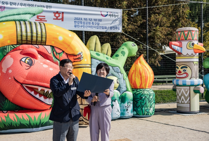 ▲ 지난해 10월, 광진 민간어린이집 가족운동회에 참석한 김경호 광진구청장 |