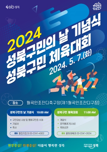 10시에 1부 행사로 ‘2024 성북구민의 날 기념식’을 진행하고, 11시부터는 2부 행사로 ‘성북구민체육대회’가 펼쳐진다.