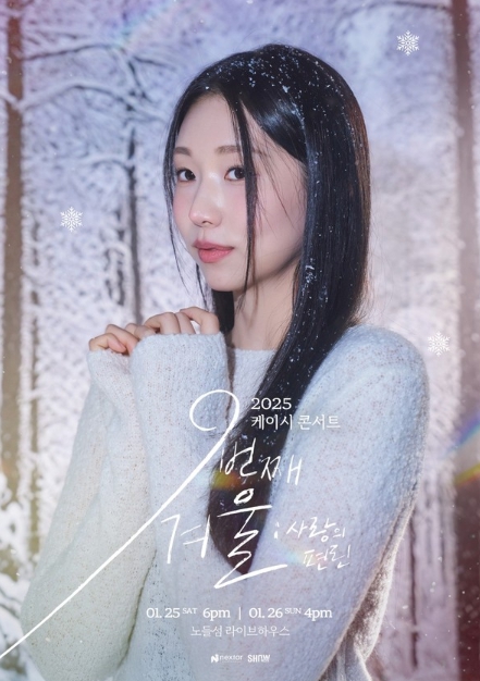 케이시는 내년 1월 25일과 26일, 양일간 서울 노들섬 라이브 하우스에서 2025 케이시 콘서트 '아홉번째 겨울 : 사랑의 편린'을 개최한다.