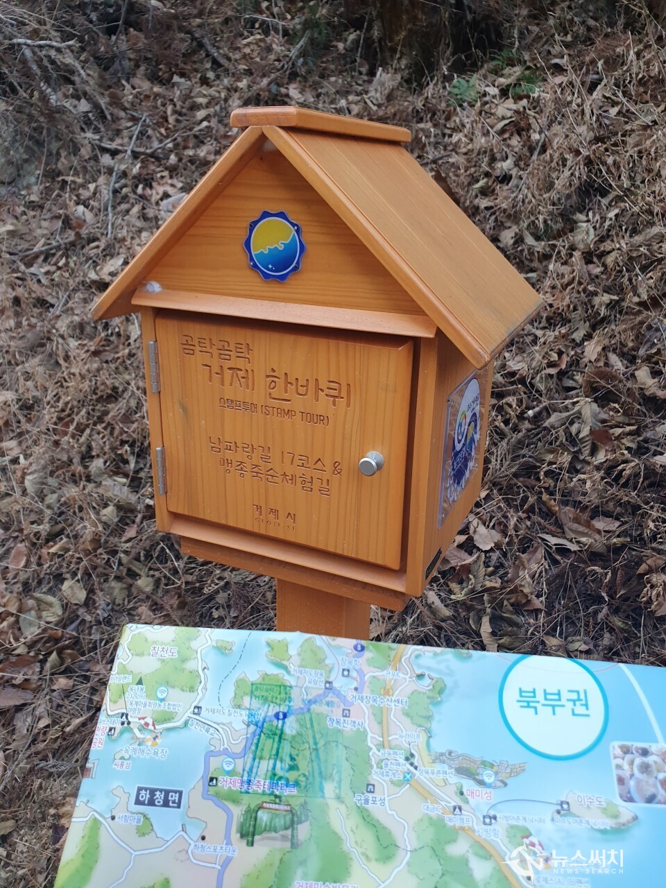 맹종죽순 체험길 인증함. 거제시는 거제도 내의 유명한 걷기길을 정리하여 ‘거제 섬&섬길’을 지정하여 관리하고 있다. ‘거제 섬&섬길’은 총 13개 길로 이루어져 있는데, 그중 하나가 ‘맹종죽순 체험길’이다. ‘거제 섬&섬길’은 스탬프 투어도 함께 운영하고 있는데, 13개 길에 인증을 할 수 있는 스탬프 인증함을 설치해 놓고 있다. 맹종죽순 체험길 내에도 ‘거제 섬&섬길’ 스탬프 인증함이 설치되어 있다.