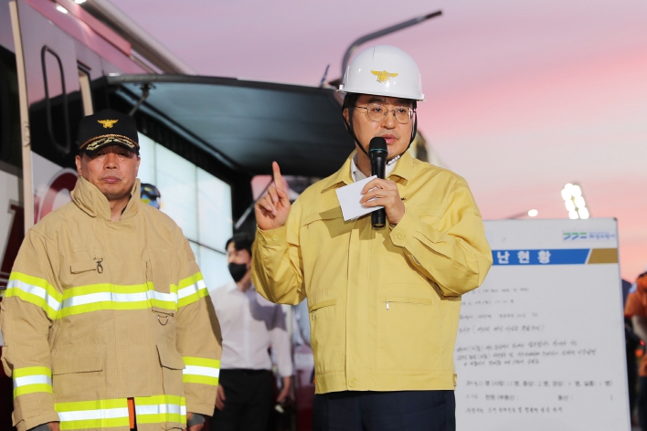 김동연 지사는 이날 저녁 8시경 화성시 서신면 사고 현장에서 기자브리핑을 열고 이런 내용을 담은 경기도의 사고 수습과 후속 대책에 대해 설명했다.