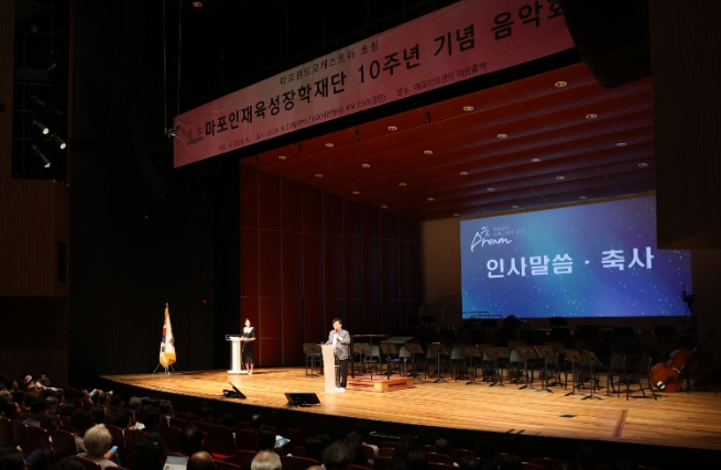 이날 열린 ‘마포드림즈 음악회’는 마포인재육성장학재단의 10주년을 기념하고자 개최됐으며, 티켓 판매 수익금은 마포 인재를 위해 재단에 기부됐다.