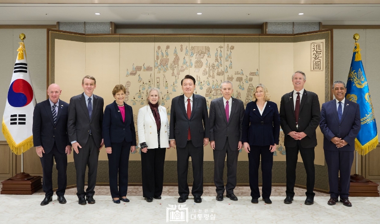 대통령은 美 상하원 의원단의 방한을 환영한다고 했다. 대통령은 또한 美 의회가 한미동맹 발전에 중요한 역할을 하고 있는 데 대해 감사히 생각한다며 자유, 민주주의, 법치의 보편적 가치에 기반한 ‘글로벌 포괄 전략동맹’인 한미동맹의 외연이 군사안보 뿐 아니라 경제안보, 첨단기술, 문화, 사이버와 우주 등으로 나날이 확장되고 있다고 했다.