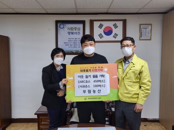 이번 기탁은 부림농산에서 자색 당근을 주원료로 개발한 ABC주스와 사과주스를 관내 취약계층과 함께 나누고자 마련됐으며 도움이 필요한 어려운 이웃들에게 소중하게 전달될 예정이다.