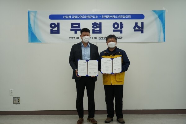 이날 협약은 산림청 국립자연휴양림관리소 북부지역에서 청소년 숲체험 프로그램과 숲 해설가 지원을 위해 마련됐으며 협약에 따라 양평군 청소년의 꿈과 끼를 키우는 창의적 체험활동을 지속해서 추진하기로 했다.