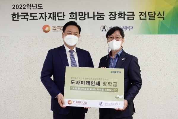 ‘희망나눔 장학금’은 재단의 도자 전문 도서관 ‘만권당’ 연간 운영을 통해 마련된 기금으로 이번 전달식에서 한국도예고등학교 도예 우수 학생 3명을 선정해 총 150만원의 장학금을 전달했다.