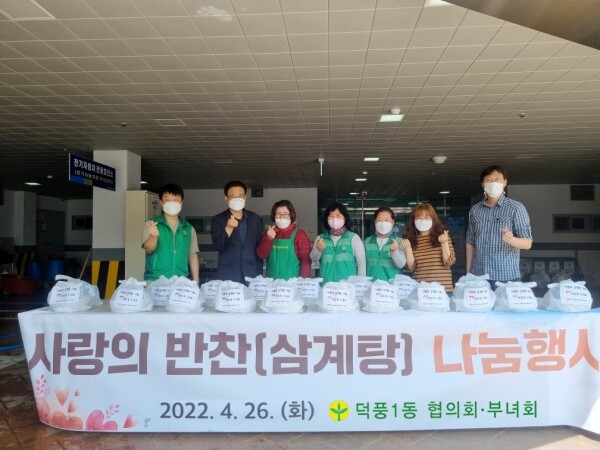 이날 회원들은 정성스럽게 조리한 삼계탕과 열무김치를 덕풍1동에 거주하는 저소득 독거어르신 20가구에 전달했다.