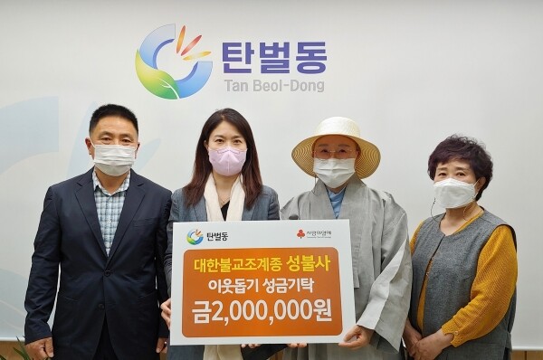 이성은·박광군 공동위원장은 “어려운 이웃을 위해 힘이 되어 주신 동법 주지스님과 성불사 불자들께 깊은 감사를 드린다”며 “기탁한 성금은 공동모금회를 통해 탄벌동의 특화된 복지사업을 위해 사용하겠다”고 말했다.