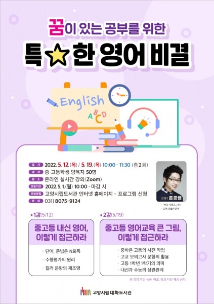 대화도서관 관계자는“주요 교과 과목인 영어를 집중 탐색하는 시간을 통해 양육자의 진로 지도 역량 강화에 도움이 되길 바란다”고 밝혔다.
