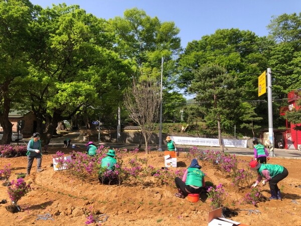 이날 활동은 단월면 새마을회장을 비롯한 회원 30여명이 참석한 가운데 단월면 복지회관 일원 공터에 연산홍과 초화류 등 2천 8백 주의 꽃·나무를 식재해 싱그러운 꽃동산을 조성했다.