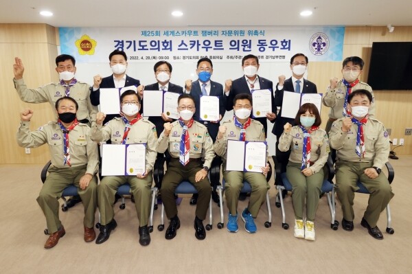 이날 위촉식은 2023년 8월1일부터 8월12일까지 전라북도 새만금에서 개최되는 ‘제25회 세계스카우트 잼버리’의 성공적인 운영을 위해 경기도의회 스카우트 동우회 의원들을 연맹 추진위원회 자문위원으로 위촉하고 학교 청소년단체 활동을 통한 바른 성장에 기여한 공로에 대한 감사장을 전달하고자 개최됐다.