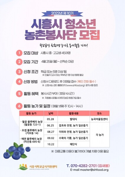 시 관계자는 ”청소년농촌봉사단 활동을 통해 도시와 농업, 생산자와 소비자를 연결해 시민들에게 친환경 농업의 가치와 건강한 먹거리의 중요성을 알리고 지역 내 건강한 먹거리의 생산과 소비가 더 확대될 수 있기를 기대한다“고 강조했다.