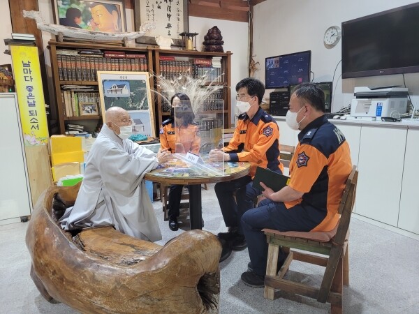 주요 내용으로는 화재 및 재난사례 전파 촛불 사용 및 연등과 같은 화재취약요인에 대한 안전관리 지도 화재안전 체크리스트를 활용해 지도점검 및 안전 당부 사찰관계자 시설물 안전관리 및 초기대처·대피요령 교육 등으로 진행됐다.