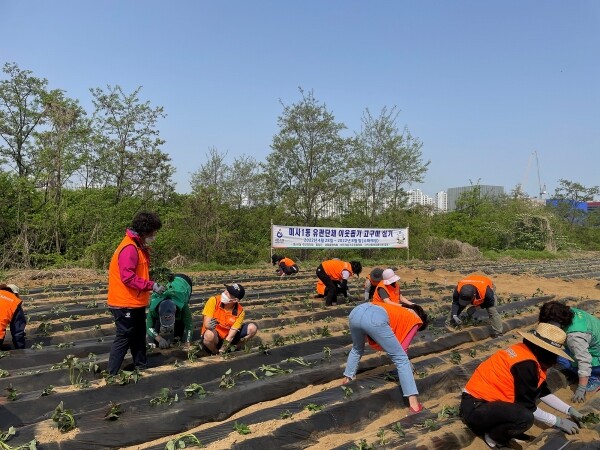 이날 고구마 심기에는 미사1동 주민자치회, 통장단, 새마을협의회, 바르게살기운동협의회 및 지역사회보장협의체 등 6개 유관단체 회원 70여명이 참여했다.