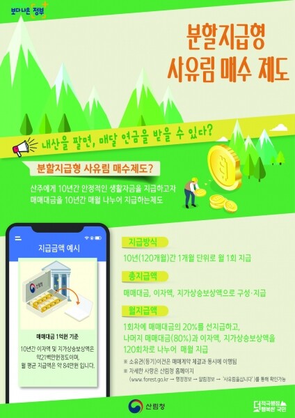분할지급형 사유림매수제도에 관해 궁금한 사항은 산림청 국유림경영과로 전화하면 안내받을 수 있다.