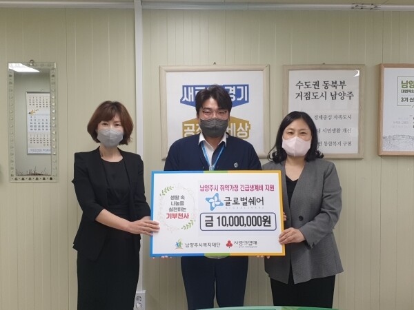 남양주시복지재단 우상현 대표이사는 “나눔 문화 확산을 위해 여러 방면으로 노력해 주시는 ㈔글로벌쉐어에 감사하다”며 “이번 지원이 도움이 필요한 가정에 큰 힘이 될 것”이라고 전했다.