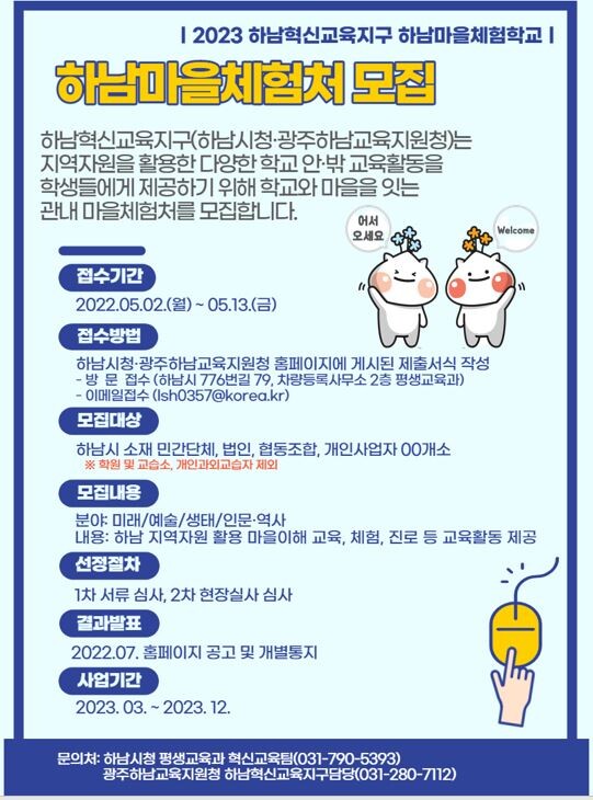 참여를 원하는 민간단체 등은 하남시 평생교육과로 메일 또는 방문해 접수할 수 있다.