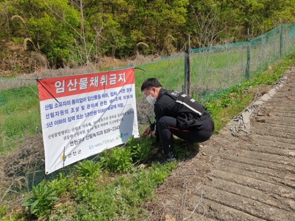 군은 산림특별사법경찰관 등으로 구성된 단속반을 운영해 봄철 산나물·산약초 채취 목적의 모집 산행, 임산물 불법 채취 및 무단 입산 행위 등 산림 내 불법행위를 집중단속 할 예정이다.
