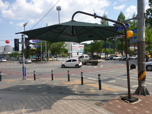 그늘막은 유동인구가 많은 주요 횡단보도와 교통섬등에 설치해 여름철 폭염 속 시민들이 신호를 기다리는 동안 잠시 햇빛을 피할 수 있는 시설로 뜨거운 햇빛을 막고 그늘을 만들어 열사병 등의 온열질환 예방효과가 있다.