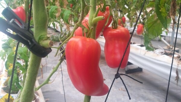 한편 고깔토마토는 재래 토종 토마토로써 기존 육종 토마토와는 다르게 길쭉한 모양을 가지고 있으며 고깔 모양을 닮아 고깔토마토라고 불린다.