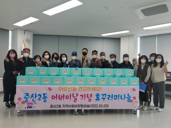 남기준 중산2동장은 “효꾸러미 전달을 통해 외롭게 생활하는 독거 어르신들의 안부를 살피고 소통해, 도움이 필요한 어르신들에게 필요한 복지 지원을 해 복지사각지대를 해소하는 중산2동이 되도록 노력하겠다”고 밝혔다.